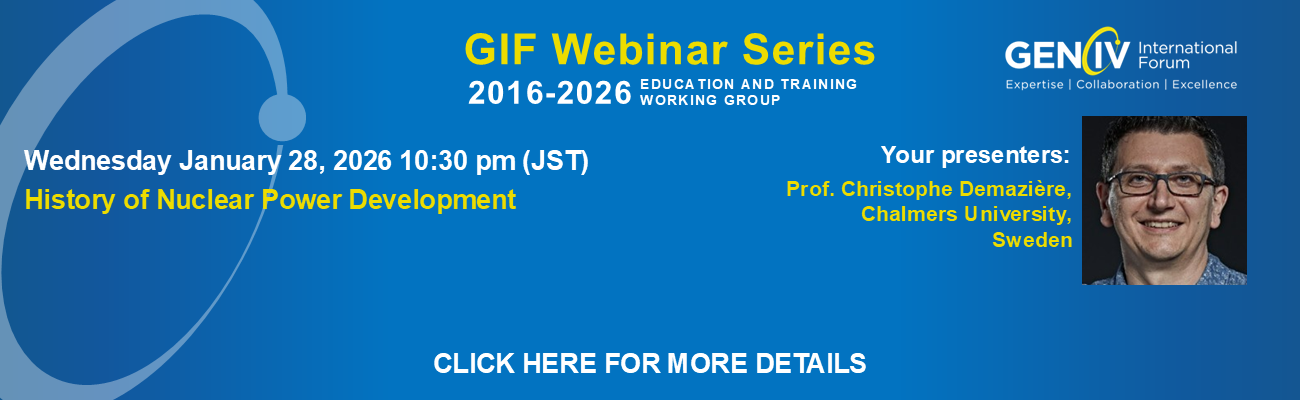 第100回GIFウェビナー「第4世代原子炉システムをサポートする先進的製造」のYouTube動画、プレゼンファイルが公開されました。 | |