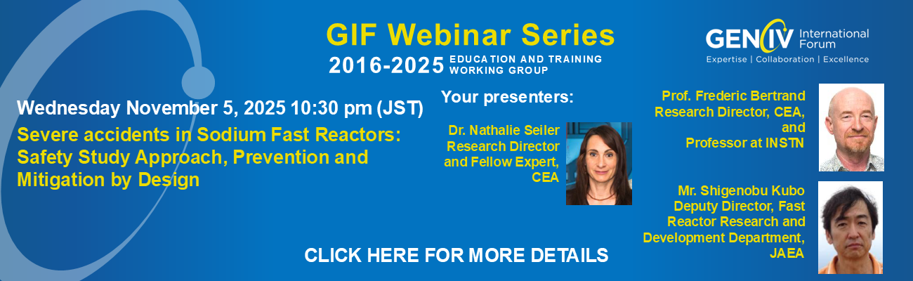 第106回GIFウェビナー「ナトリウム冷却高速炉(SFR)のシビアアクシデント:安全研究アプローチ、設計による防止と緩和」の開催案内を掲載しました。 | |