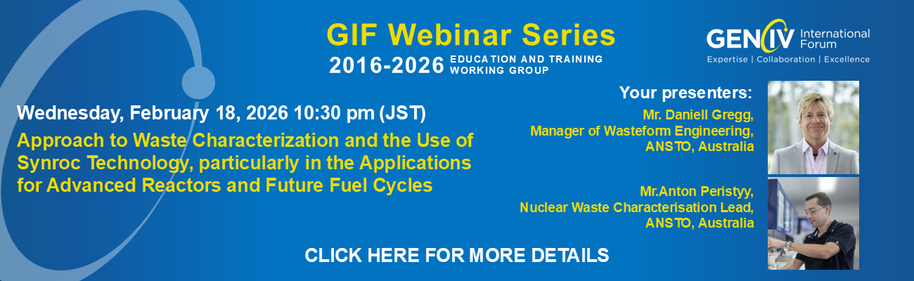 | 2/18(2026) | 第109回GIFウェビナー「廃棄物特性評価へのアプローチとSynroc技術の活用-特に先進炉および将来の燃料サイクルへの応用について」 | |